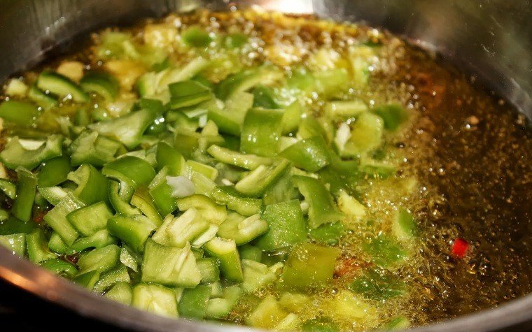 ... i, pràcticament a continuació, el pebrot. Deixeu que agafi color.