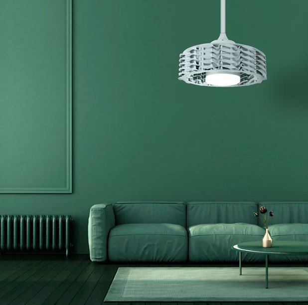 Es un diseño moderno que no tiene aspas, pero que cuenta con un diseño circular y motor de alta potencia para hacer circular el aire de manera eficiente y además con velocidades ajustables hasta en 6 posiciones.