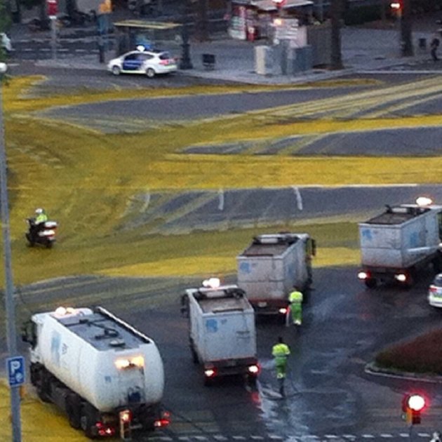El gran sol que Greenpeace va pintar a la plaça Francesc Macià de Barcelona continua provocant discussió tot i que ja s'ha netejat. Precisament el tema de la neteja és el que està creant controvèrsia a les xarxes. Tot va començar amb una piulada de Carina Mejias, la presidenta del Grup Municipal de Ciutadans a l'Ajuntament de Barcelona. En aquest tuit Mejias acusa a Greenpeace d'embrutar la plaça i després no fer-se càrrec de les despeses de neteja perquè, segons ella, els camions són de BCN Neta. Tot plegat hi acompanya d'una fotografia per acabar de "sustentar" la seva teoria.