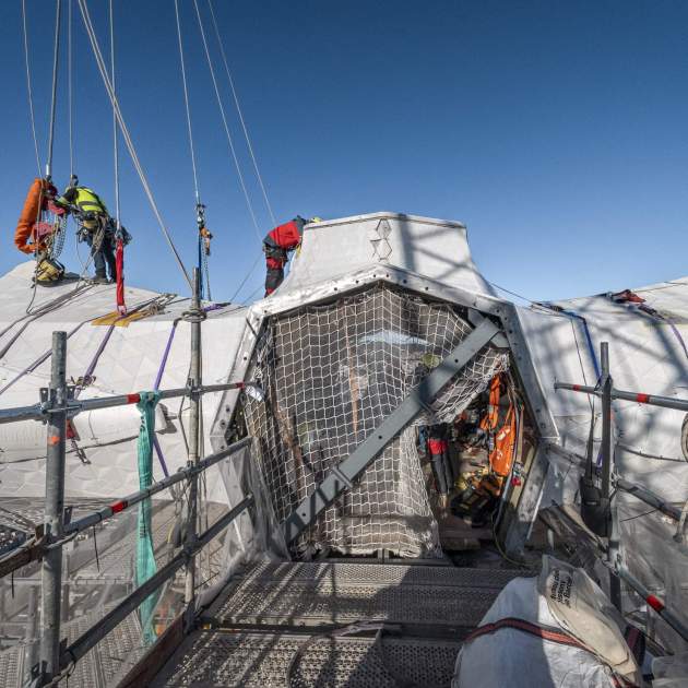 ¡A vista de grúa! 👀 Así se han colocado el primer y el segundo brazo horizontal de la Cruz de la torre de Jesucristo. 🙌