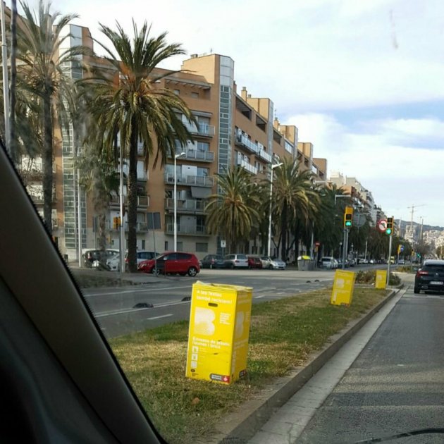 Hola @AdaColau !! Imagino que esta noche su vestido será amarillo separatista, igual que esas papeleras de cartón amarillo que han aparecido en medio de la calle Marina en Barcelona...