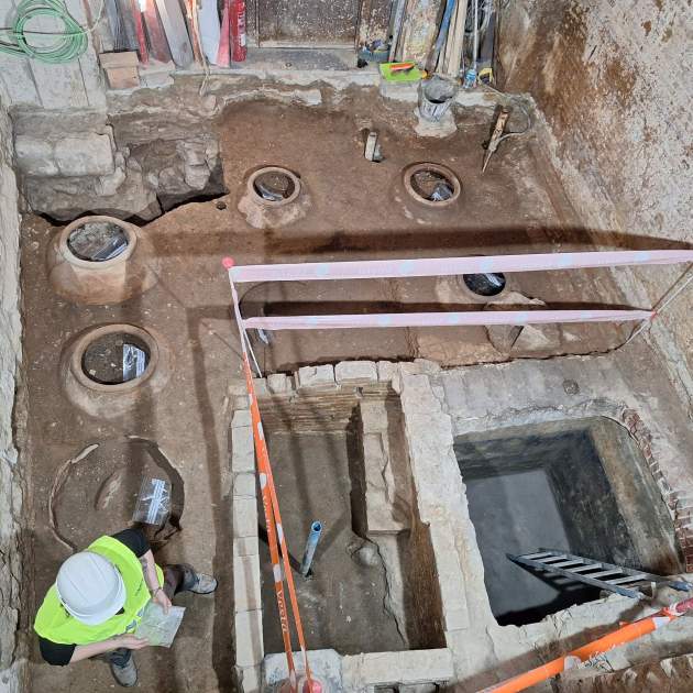 Els treballs continuen en l’excavació arqueològica del subsol i, alhora, es realitza l’estudi dels paraments de l’immoble amb la finalitat de continuar documentant els diferents períodes i conèixer l’evolució de l’edifici. Les restes trobades, un cop documentades, es traslladaran a les instal·lacions de l’ICUB a la Zona Franca i queda oberta la possibilitat de la conservació d’alguna peça in situ. El Servei d’Arqueologia de Barcelona i el servei de Patrimoni Arqueològic i Paleontològic de la Generalitat supervisen la intervenció arqueològica dirigida per Global Geomàtica SL. BIM/SA és l’ens promotor de les obres.