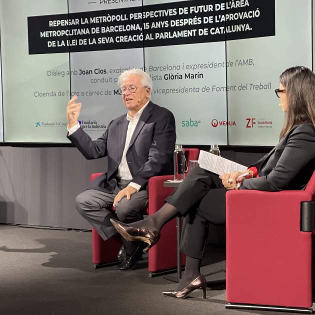 De fet, els canvis demogràfics i la manera d’assumir-los ha estat un dels eixos de la intervenció posterior de Clos, que ha recordat que “hem passat de la Catalunya dels sis milions a la dels vuit” i ara "anem pel camí dels nou", per això, l’exalcalde ha recordat que fa quinze anys l’Àrea Metropolitana de Barcelona (AMB) “va néixer amb poca ambició”, ja que ha quedat amb una superfície de poc més de 600 quilòmetres quadrats, “com el municipi de Madrid”. De fet, Clos ha identificat l’habitatge i la mobilitat com a principals reptes del creixement de la metròpoli, i per això ha reclamat que assolir, comptant amb el ja existent, un parc d’habitatge públic d’un milió de llars, que serien un 25% del total, afegint que hi ha prou espai a la regió metropolitana per encabir-los.