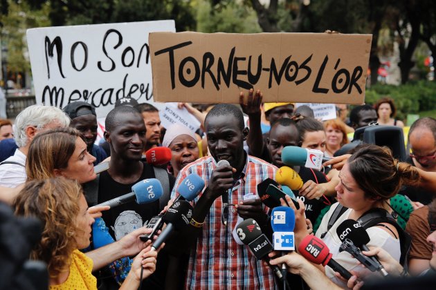 Els membres del Sindicat lamenten els fets, perquè diuen que només han servit per estigmatitzar encara més els manters, i també "tots els negres". Han afirmat que la versió que han ofert els mitjans és "ridícula", perquè no ha aparegut la dona del carretó amb el nen (que va dir defensar el turista), i perquè a la plaça Catalunya, aquell dia, sobrava l'espai per passar. Han assegurat que hi ha molta manipulació, i afegeixen que mai no es creu la versió del negre. Segons el Sindicat, tots els vídeos que s'han difós estan retallats i no es veuen els fets sencers... Afegeixen que esperen que surtin a la llum les gravacions de les càmeres de seguretat i que es vegin els fets complets. Mig centenar de persones han acudit a la roda de premsa per tal de donar suport als manters, tot representant un total de 85 col·lectius, entre els quals els iaioflautes.