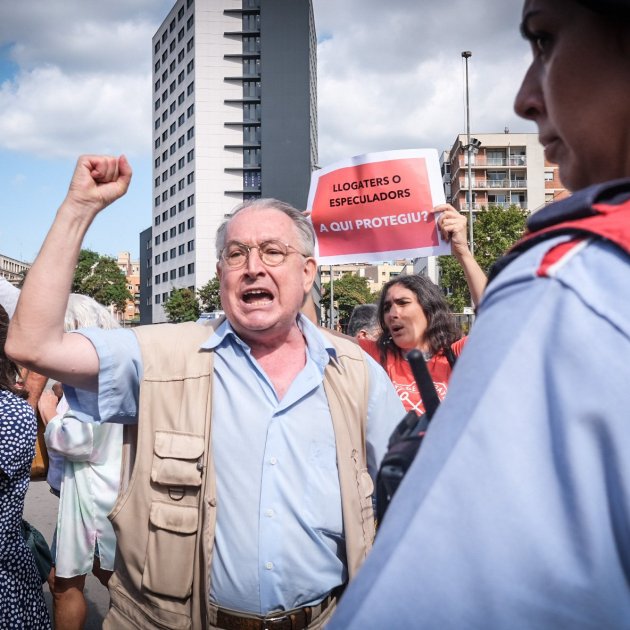 Allà, un grup d’una desena de membres del Sindicat de Llogateres ha començat a cridar i fer sonar xiulets i a exclamar lemes a favor de la regularització dels lloguers. Hi ha hagut un intent d’accedir a l’interior de la carpa, però l’acció dels serveis de seguretat i dels Mossos d’Esquadra ho han impedit. Els concentrats han seguit una estona cridant des de fora, però aviat s’ha pogut reprendre l’acte de presentació de l’Estació de Sants. Posteriorment han arribat dues furgonetes més dels Mossos d’Esquadra, que mantenien vigilància al perímetre exterior de l’envelat.