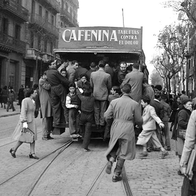 Imatge principal: Un tramvia amb sobreocupació entre 1940 i 1945 / Foto: Josep Brangulí / Arxiu Nacional de Catalunya