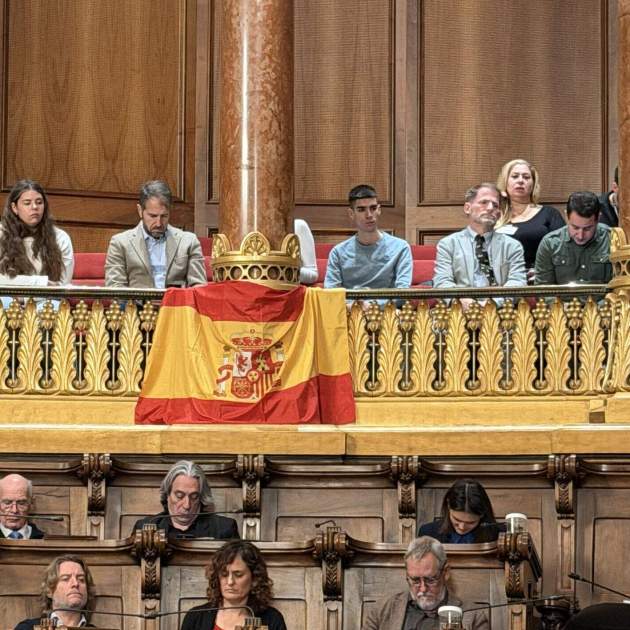 El partit d’ultradreta Vox ha escenificat aquest divendres el seu unionisme penjant una bandera espanyola a la tribuna de convidats del Saló de Plens Pi i Sunyer de l’Ajuntament de Barcelona, una acció duta a terme per afiliats del partit davant la mirada d'assessors i consellers de districte de la formació. A més, s’han negat a retirar-la quan se’ls ha requerit, segons han indicat fonts del mateix partit. En una acció, presumiblement preparada, Vox ha reaccionat al fet que en anteriors plenaris i també en el d’aquest divendres, regidors de Barcelona en Comú han penjat una bandera de Palestina.