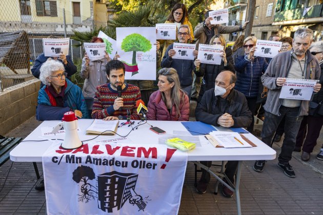 Tot això ha passat en la manifestació convocada per la plataforma Salvem el Carrer Mossèn Amadeu Oller davant la intenció de l’Ajuntament de Barcelona de construir en l’àmbit de l’antiga fàbrica de Can Batlló un edifici d’habitatge cooperatiu. El motiu de queixa veïnal és el fet que en el projecte d’edifici s’inclou un espai d’aquest carrer d’uns 350 metres quadrats enjardinats amb parterres, diversos arbres i bancs per seure, que es va aconseguir gràcies a la reivindicació veïnal que el va reclamar a l’ajuntament franquista de Barcelona, que els el va cedir l’any 1961. Pau Domingo, portaveu de la plataforma veïnal, el mateix que ha fet referència a la “cordialitat veïnal”, ha llegit el manifest en defensa del jardí entre aplaudiments dels veïns.