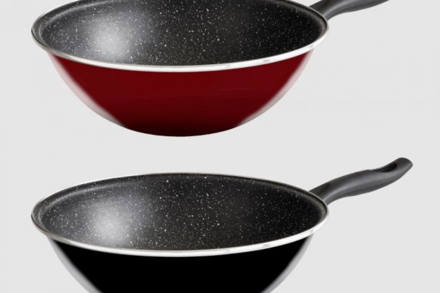 Així mateix, aquest wok d'Aldi compta amb 3 capes de revestiment antiadherent. I llueix un disseny que imita la pedra. A més, pots triar l'exterior en dos colors: negre o vermell.