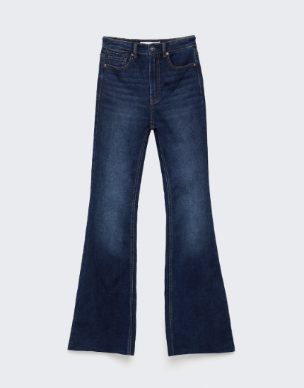 Quan de texans clàssics i amb estil es tracta, Stradivarius sap adaptar-se molt bé i aquest model flare és un exemple d'això. Uns vaquers que tenen un disseny de tir alt per cenyir la figura i ajustar-se al cos amb un estil elegant i delicat. Afavoreix la figura gràcies al seu ajustament a la cintura, permetent-te a més combinar-los amb camises i altres peces tant per dins com per fora, amb un efecte encantador. És un disseny amb costures marcades igual com els clàssics texans de sempre, amb un tancament de botó i cremallera que aporten el millor ajustament. El botó i la cremallera són metàl·lics i el disseny conserva les clàssiques travetes per agregar un cinturó amb el millor estil. El seu teixit és còmode i agradable al tacte, però alhora té un acabat strech que li permet emmotllar-se a les cames i els glutis aportant una millor forma.