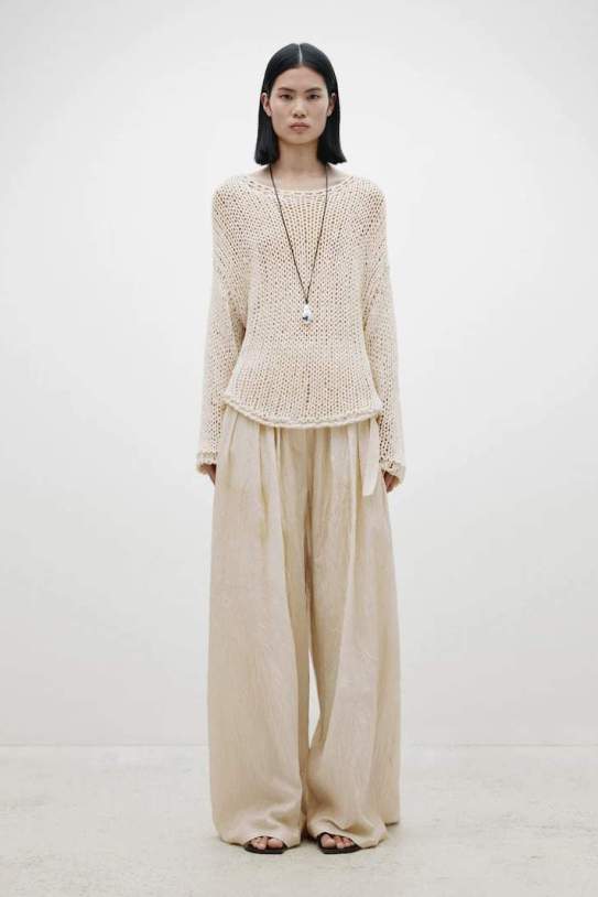Els punys són amplis i amb vora delicada, apostant també per la comoditat. Un jersei de tall ampli també als malucs i que s'estén fins als malucs per comptar amb una caiguda delicada, de vora llisa i encantadora.