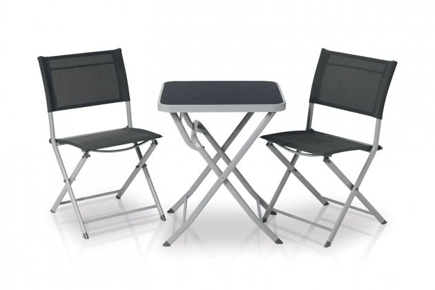 Quant a les seves dimensions, la taula mesura 60 cm per 60 cm a la superfície i 70 cm d'alt, i permet una càrrega màxima de 50 quilos. Les cadires mesuren 47 cm per 48,5 cm, amb una altura de 84,5 cm. I la superfície explica amb una tela de polièster que suporta un pes de 110 quilos cada una. A més, tots els integrants d'aquest set munten peus antilliscants que evitaran que es ratlli el terra.
