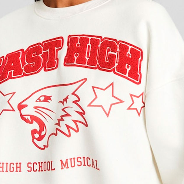 La dessuadora es presenta amb un disseny que evoca la nostàlgia dels dies d'institut. Amb un estampat d'High School Musical, la peça no només ret homenatge a la cultura pop, sinó que també es converteix en una declaració d'estil audaç i divertida.