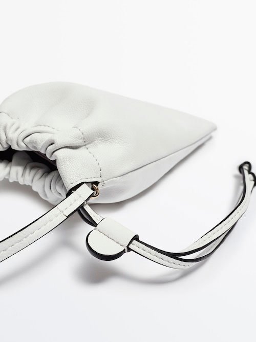 Les mesures d'aquesta bossa de Massimo Dutti són de 16 x 20,5 x 2 cm i es pot destacar que és una bossa que ha estat confeccionada amb pell bregada 100% Join Life, una línia que s'encarrega d'utilitzar processos que contribueixen amb el medi ambient. El preu d'aquesta bossa de saquet de Massimo Dutti és de 59,95 euros.