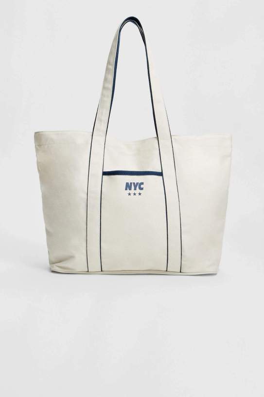 Stradivarius aconsegueix sorprendre'ns en afegir al seu estoc un dels accessoris tendència als carrers de les ciutats americanes. Es tracta d'una bossa de disseny shopper, amb estil urbà, forma rectangular i amb nanses mitjanes perquè el portis a la mà o a l'espatlla. El seu compartiment principal és capaç d'emmagatzemar tots els teus essencials i amb un tancament mitjançant botó a pressió.