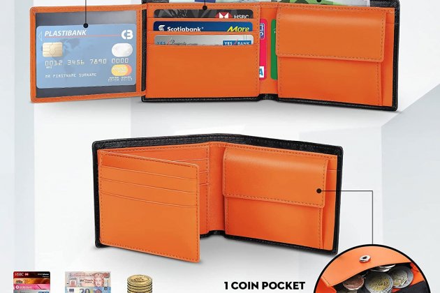 D'altra banda, aquesta cartera està fabricada amb cuir d'alta qualitat amb un acabat llis i suau. Lluu a l'exterior en un color negre molt elegant, combinat amb taronja a l'interior per crear un contrast molt atractiu. I segons el fabricant, "té una excel·lent resistència a les arrugues, la textura és còmoda i suau, el tacte és còmode, és durable i impermeable". A més, el clauer és d'acer inoxidable.