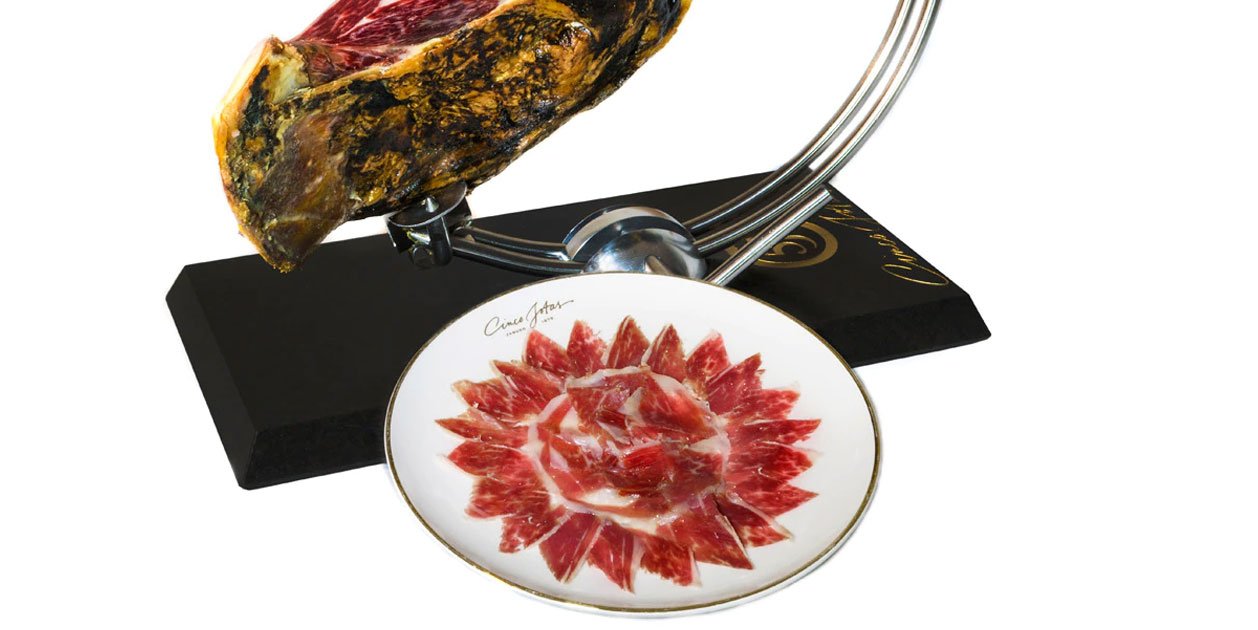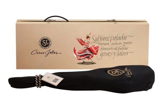 Segons el fabricant, aquesta paleta de gla 100% ibèrica Cinc Jotes està elaborada "amb les potes davanteres del Porc 100% Ibèric criat en llibertat i d'alimentació a base de glans". I prové d'una "raça única preservada des de 1879".
