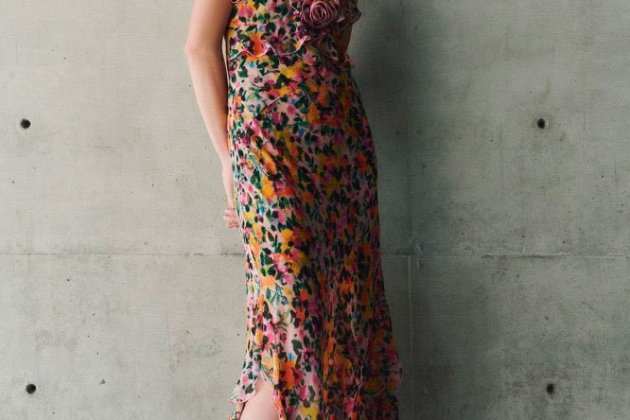 Un estampat de colors que ve acompanyat d'un baix amb volants i serrells que cauen amb delicadesa a la part inferior i molta lleugeresa, creant un efecte encantador a la figura. A més de tenir plecs delicats, és un disseny que compta amb una obertura en el lateral per a millor moviment i frescor.