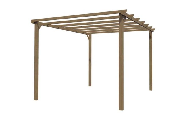 Aquesta pèrgola de fusta Tanger de Leroy Merlin està disponible en color marró, el que li permet adaptar-se a totes els jardins i decoracions amb molta facilitat, amb unes mesures de 300 x 400, té bones dimensions per adaptar-se a espais de diferents mides i que et permetrà cobrir mobles o cadires de jardí per descansar sota el sol.