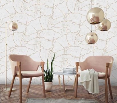 Explica amb un disseny de marbre blanc amb esquerdes daurades que li donaran un molt bon toc al teu saló o despatx. És bastant fàcil de col·locar a les teves parets, ja que només hauràs d'aplicar una cua especial per al paper i d'anar enganxant-lo a poc a poc, encara que podràs treure'l després en futur quan vulguis sense fer malbé les teves parets.