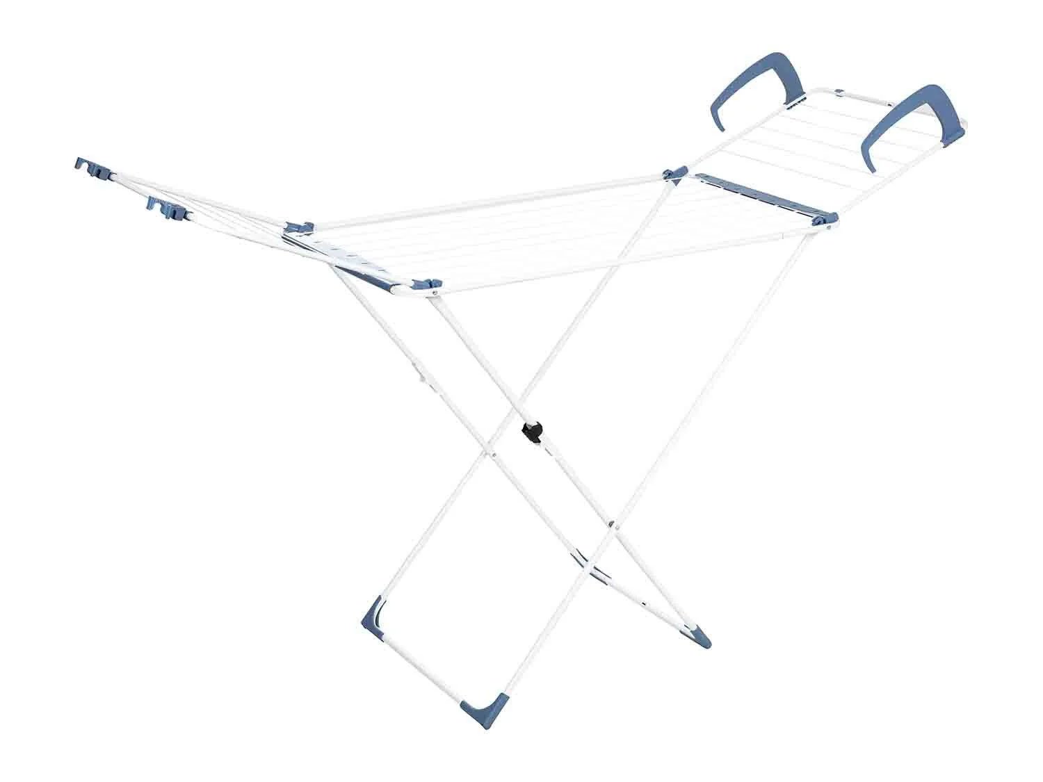 Aquest estenedor ofereix una longitud total d'estesa de 18 metres, la qual cosa hauria de ser suficient per estendre tota la bugada. Suporta fins a 16 quilos de pes, més 1,5 quilos a cada ala. I compta amb potes de plàstic molt amples que garanteixen una estabilitat total.