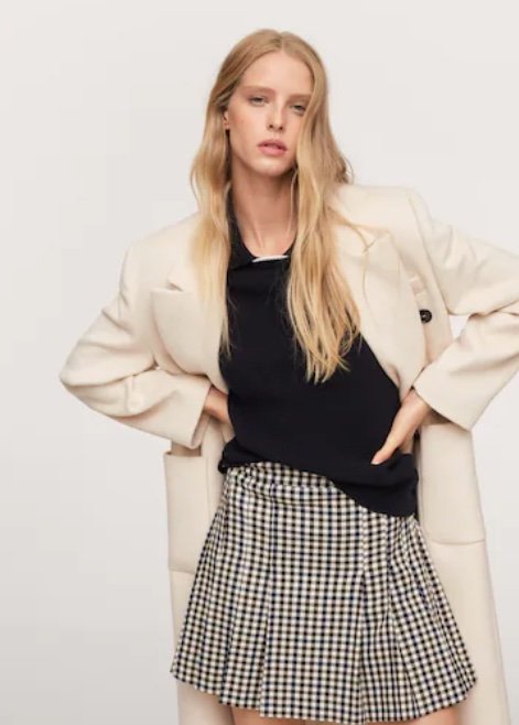 En Mango hem descobert un model de faldilla que estem segurs que Leonor podria portar en qualsevol dels seus dies escolars. Es tracta d'una faldilla midi amb estampat de quadres en blanc i negre. Té detalls prisats i una lleugera campana, amb la qual cosa resulta del més còmode per al nostre dia a dia, una cosa que aquesta temporada és tendència sense cap dubte.