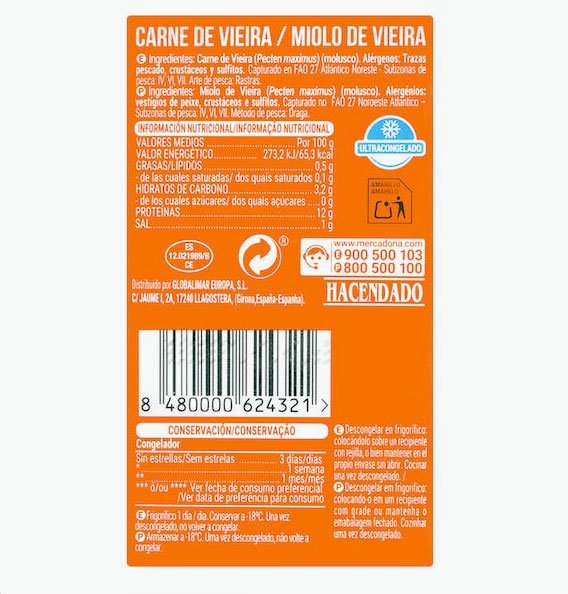Aquesta vegada Mercadona sorprèn amb un producte congelat per als paladars més exquisits. Aquesta vegada trobes un paquet de carn de vieires congelades, en diverses porcions i que conserva el sabor del plat més exclusiu del menjar gallec.