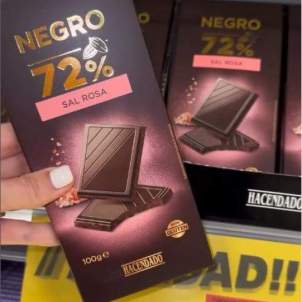 La xocolata negra amb sal rosa (també coneguda com a sal de l'Himàlaia) és l'article que està sent clau a les cuines espanyoles. El motiu d'això és que el producte combina el dolç i el salat, barreja l'intens sabor del cacau, amb la qualitat i puresa de la sal rosa. Per cada 10g té una aportació energètica de 55 quilocalories. La rajola de xocolata de sal rosa, que forma part de la línia de productes Hacendado, combina la intensitat de la xocolata negra amb el toc salat i cruixent de la sal rosa. Es presenta en un format de 100 grams, ideal per gaudir com un caprici diari o per compartir.