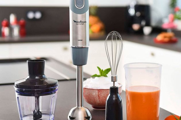 La compra d'aquesta batedora de Moulinex inclou fins a tres accessoris: un picador de 0,5 litres de capacitat, una barnilla emulsionadora que pot emulsionar fins al punt de neu, i un vas mesurador de 0,8 litres de capacitat amb què podràs afinar a l'hora de triar les quantitats dels ingredients.