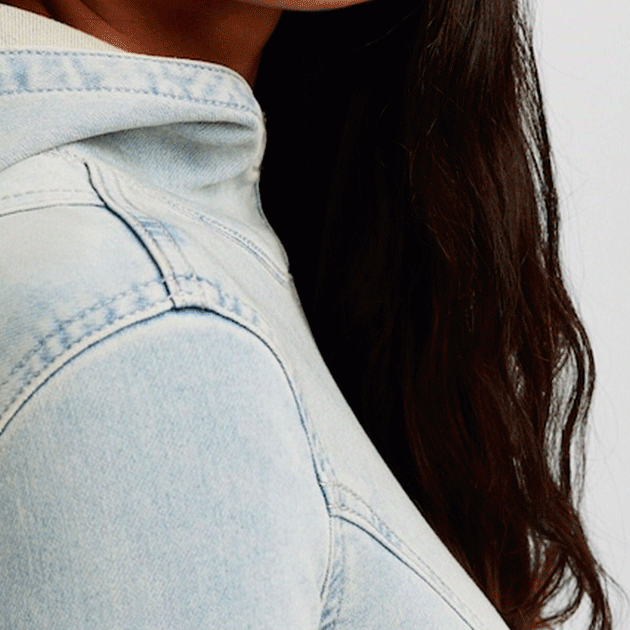 Al frontal destaquen les seves costures, les que tenen molt bons detalls i són notòries com en qualsevol peça denim. La part baixa no compta amb cap tipus d'obertures, però encara així aconsegueix ser un vestit fresc i còmode per utilitzar-se en gairebé qualsevol època de l'any. En la part posterior es destaca la caputxa i en el baix si que incorpora una obertura central per fer-lo molt més fresc i còmode en caminar.