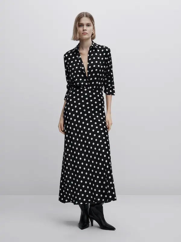 Aconsegueix robar-te totes les mirades amb aquesta faldilla de Massimo Dutti que és pur estil. Dissenyada amb un estampat de llunes petites en color blanc que creen el millor contrast amb el fons negre i que manté un patró ordenat per a màxima elegància.