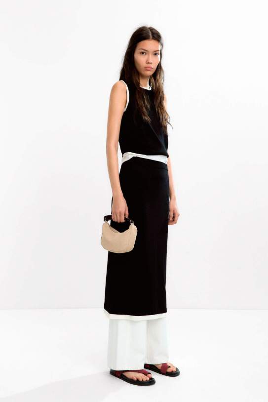 El seu disseny bicolor en negre i blanc la fa ideal per a múltiples combinacions. És una peça que es pot portar tant en looks formals com informals, depenent dels complements. Combinada amb una brusa blanca i talons, és perfecta per a una ocasió elegant. Si s'opta per un jersei oversized i sabatilles, es transforma en un conjunt més relaxat i urbà.