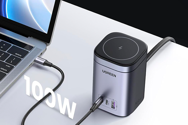 L'adaptador de corrent USB-C de 100 W amb càrrega sense fils és compatible amb una àmplia gamma de dispositius. La càrrega MagSafe de 15W és compatible amb l'iPhone 15/14/13/12, i el carregador també és compatible amb el MacBook Pro/Air, ThinkPad X1, Dell XPS, Surface Book 2, Galaxy S23/S22/S21, Note20 i molts altres dispositius populars.