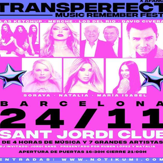 El proper 24 de novembre el Sant Jordi Club acollirà el TransPerfect Music Remember Fest, un esdeveniment musical únic que, segons indiquen els seus organitzadors, "promet ser inoblidable". A partir de les 17.30 hors, els assistents podran gaudir d'una jornada marcada per la música, la nostàlgia i la solidaritat.