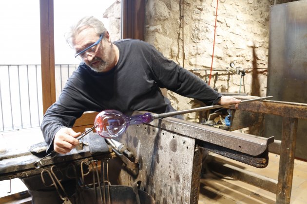 Imatge principal: El mestre vidrier del Museu del Vidre de Vimbodí, Paco Ramos, treballant al taller, on fa demostracions de vidre bufat / ACN