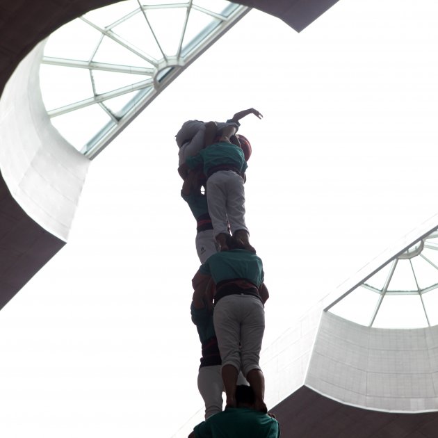 Els Castellers de Sants a punt de coronar el 2 de 9 amb folre i manilles / ACN