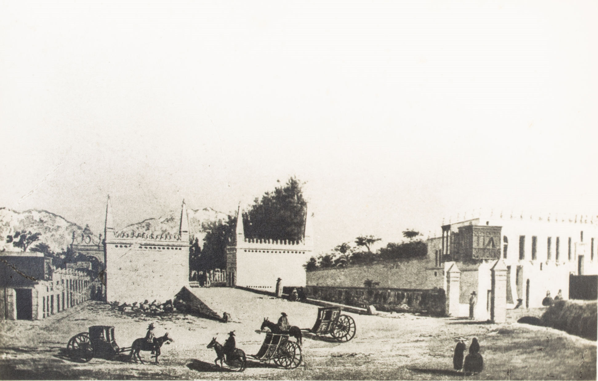 Gravat del Paseo de las Aguas i la casa de Micaela Vargas, la Perricholi (final del segle XVIII) / Repositori de la Pontifícia Universitat Catòlica de Lima
