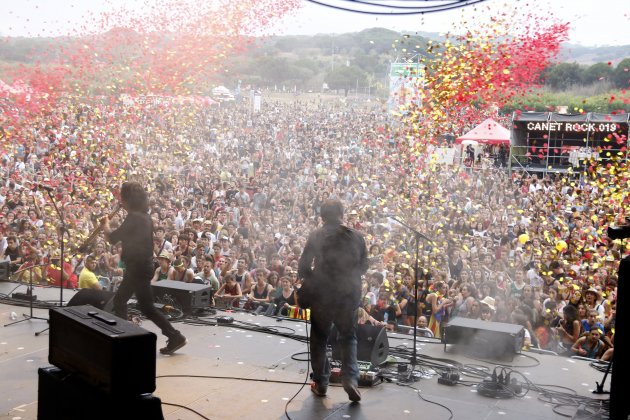 Cau el sol al Pla d'en Sala i abans que la festa del Canet Rock s'endinsi en la nit amb els concerts més potents del cartell, el festival s'atura en sec després d'un enèrgic Xavi Sarrià (ex d'Obrint Pas) per recordar la complexa situació política a Catalunya.