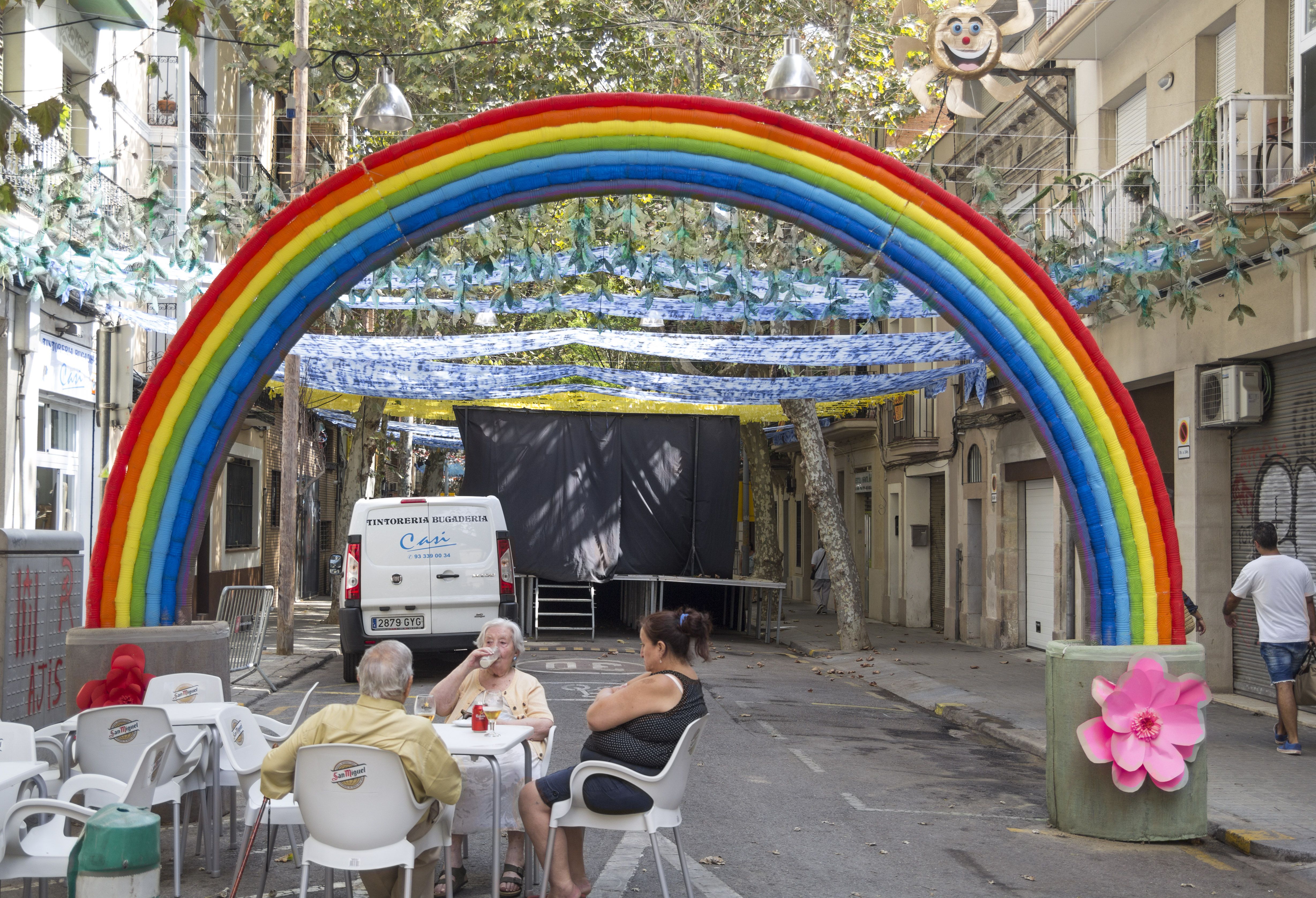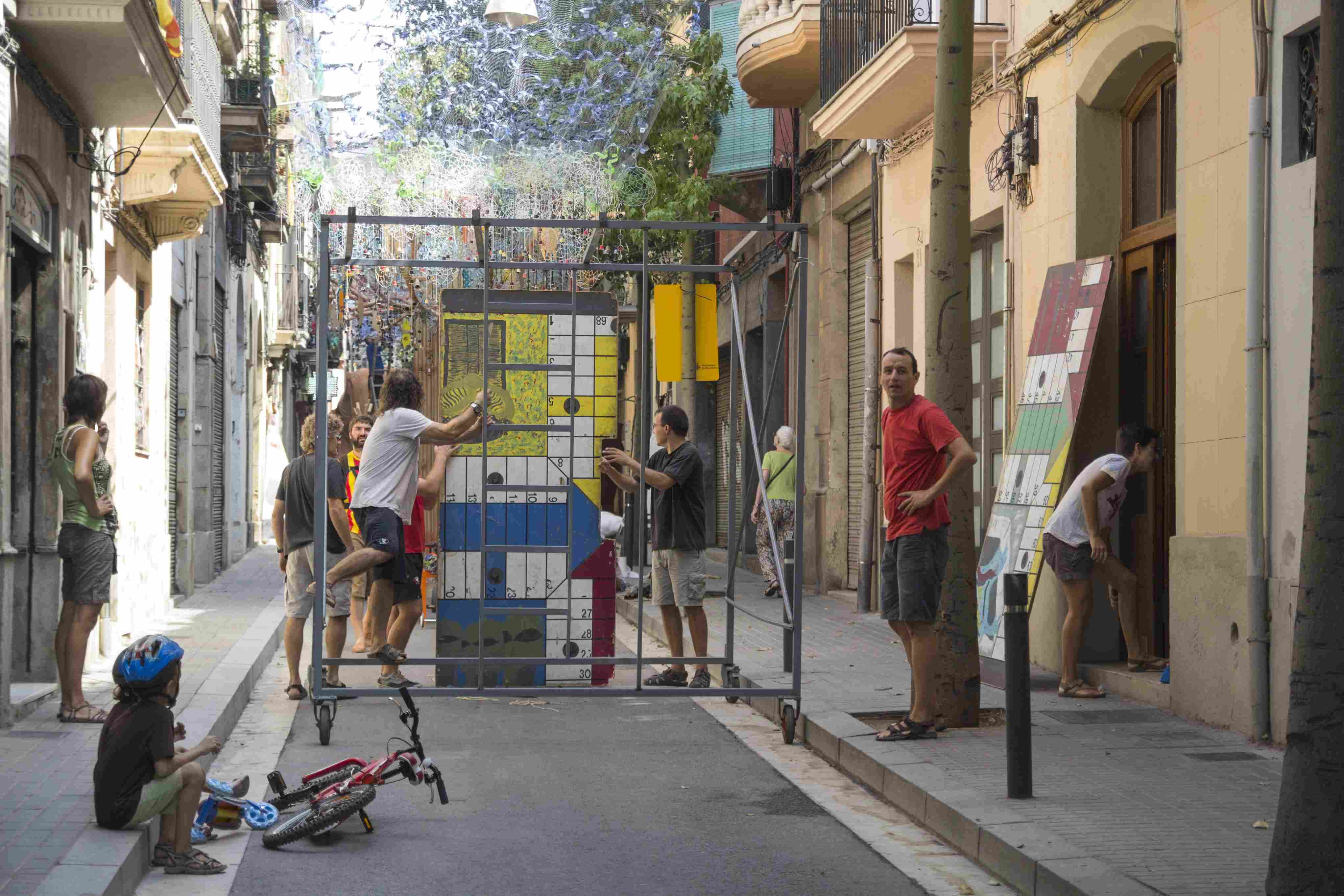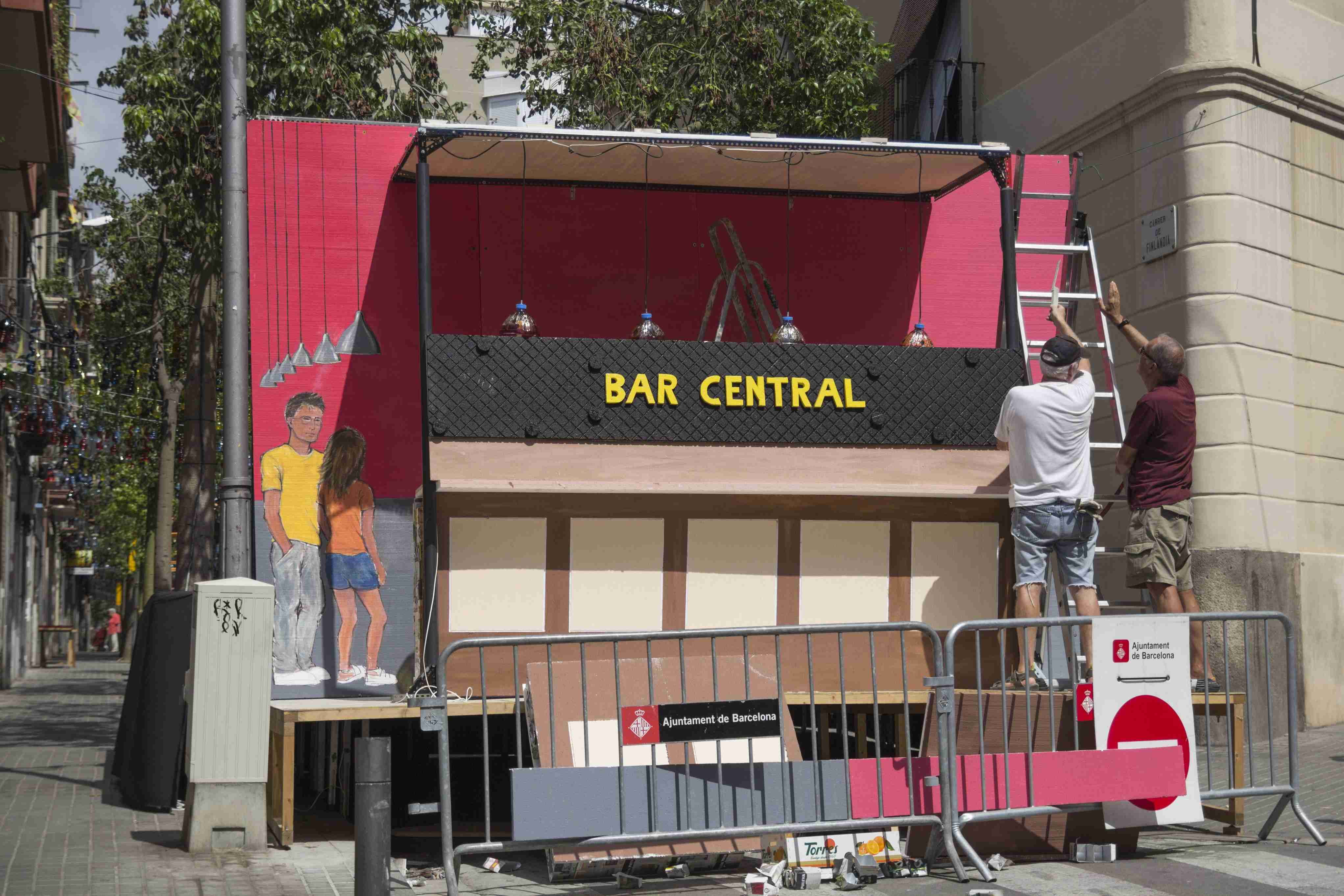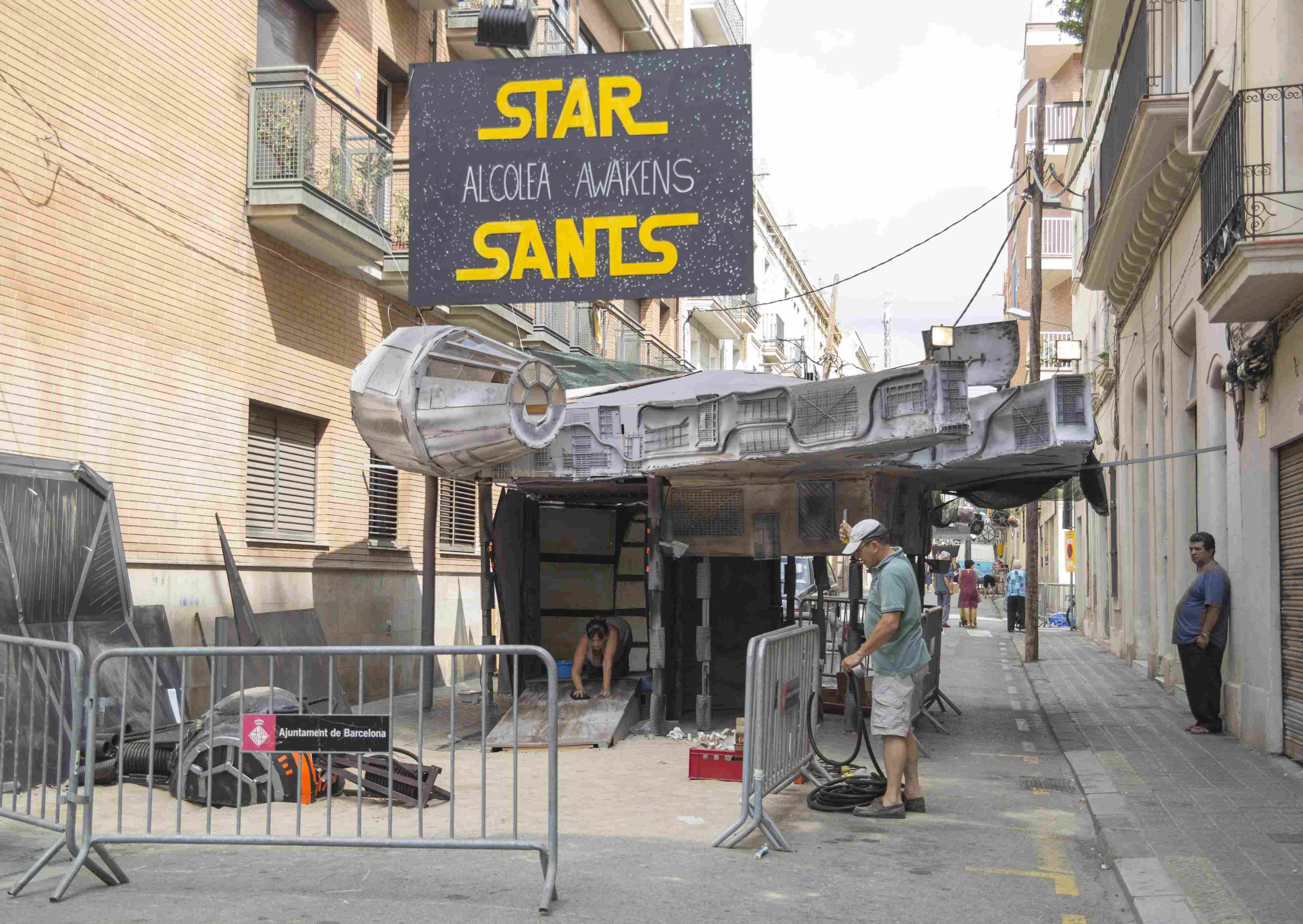 Gràcia s'acaba i Sants tot just comença. Els 17 carrers que participen enguany al concurs de guarniments de Sants, un menys que l'any passat, treballaven aquest matí a contra rellotge per acabar de preparar tots els decorats. Les festes, però, no començaran fins aquesta tarda, moment en què es donarà el tret de sortida amb el tradicional pregó a càrrec de la vedette i actriu Merche Mar.