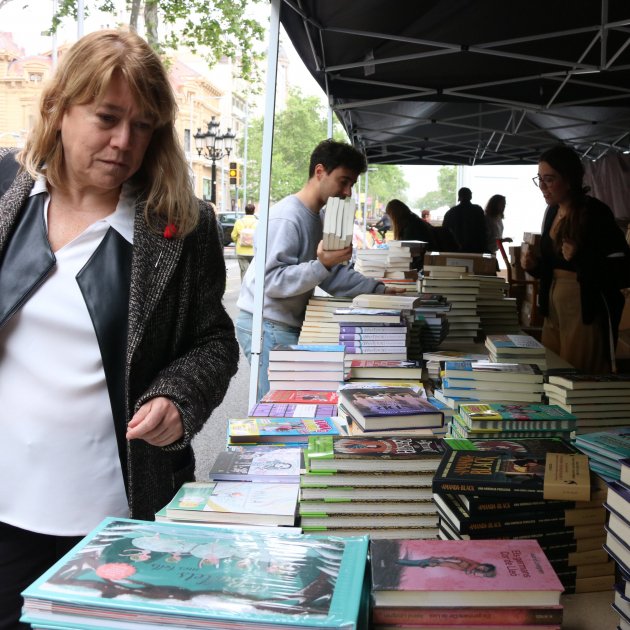 Imatge principal: la consellera de Cultura, Natàlia Garriga, mirant llibres en una parada de llibres per Sant Jordi 2022 / ACN