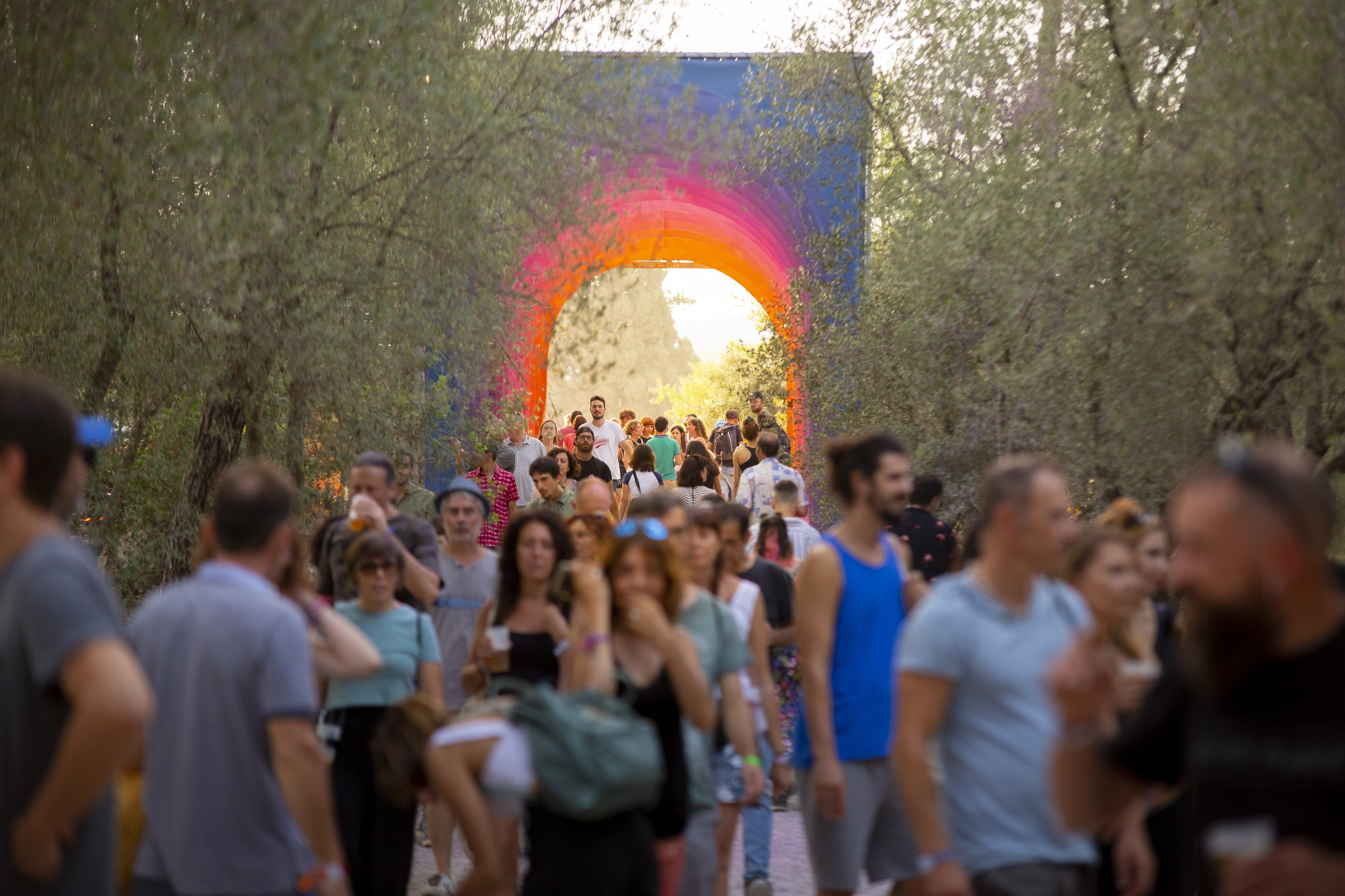 Entrada al Vida Festival, diversos arcs de colors ens acompanyen pel camí. / Foto: Pol Mascaró.