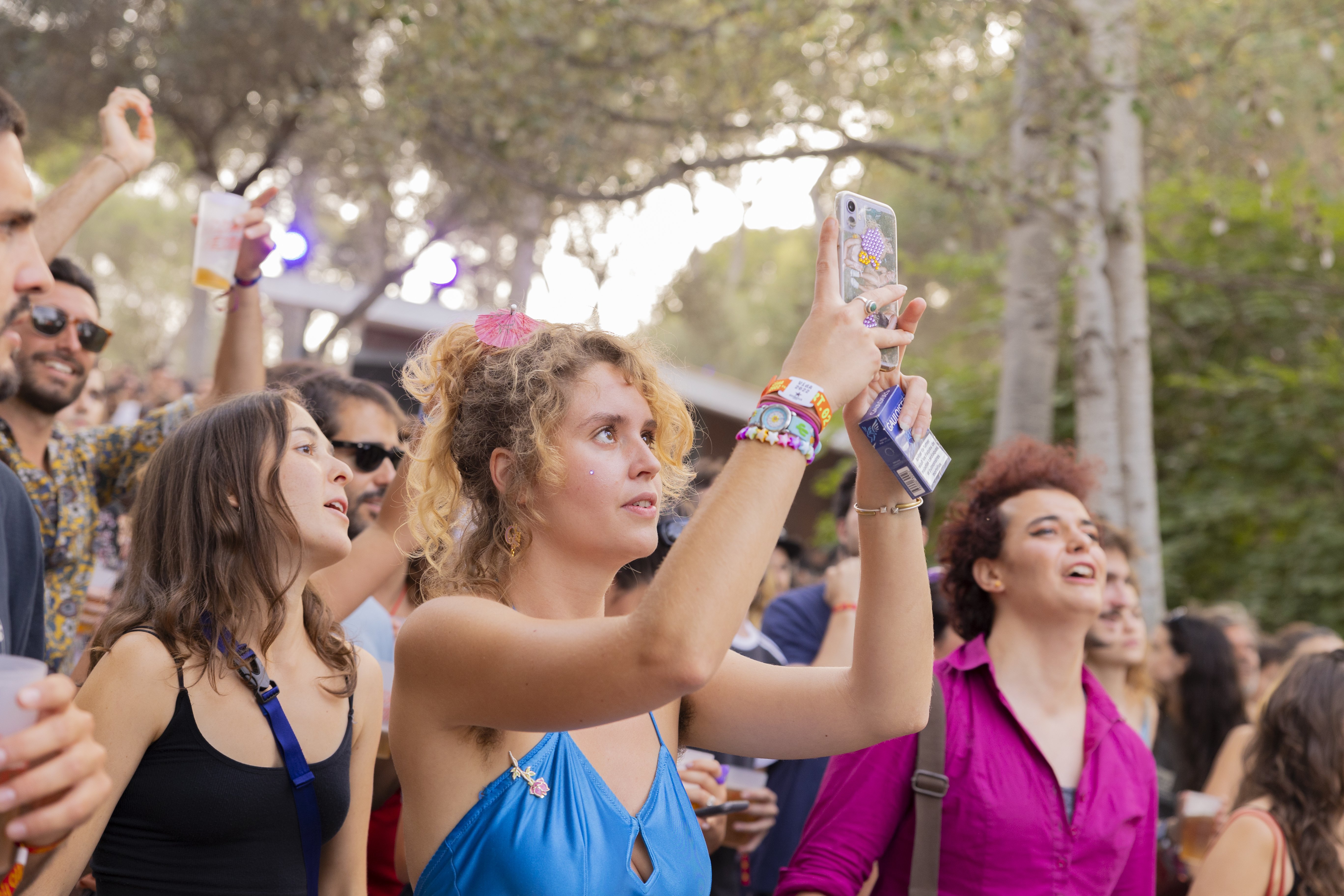 Una noia grava amb el mòbil un dels concerts de l'esdeveniment. / Foto: Pol Mascaró.