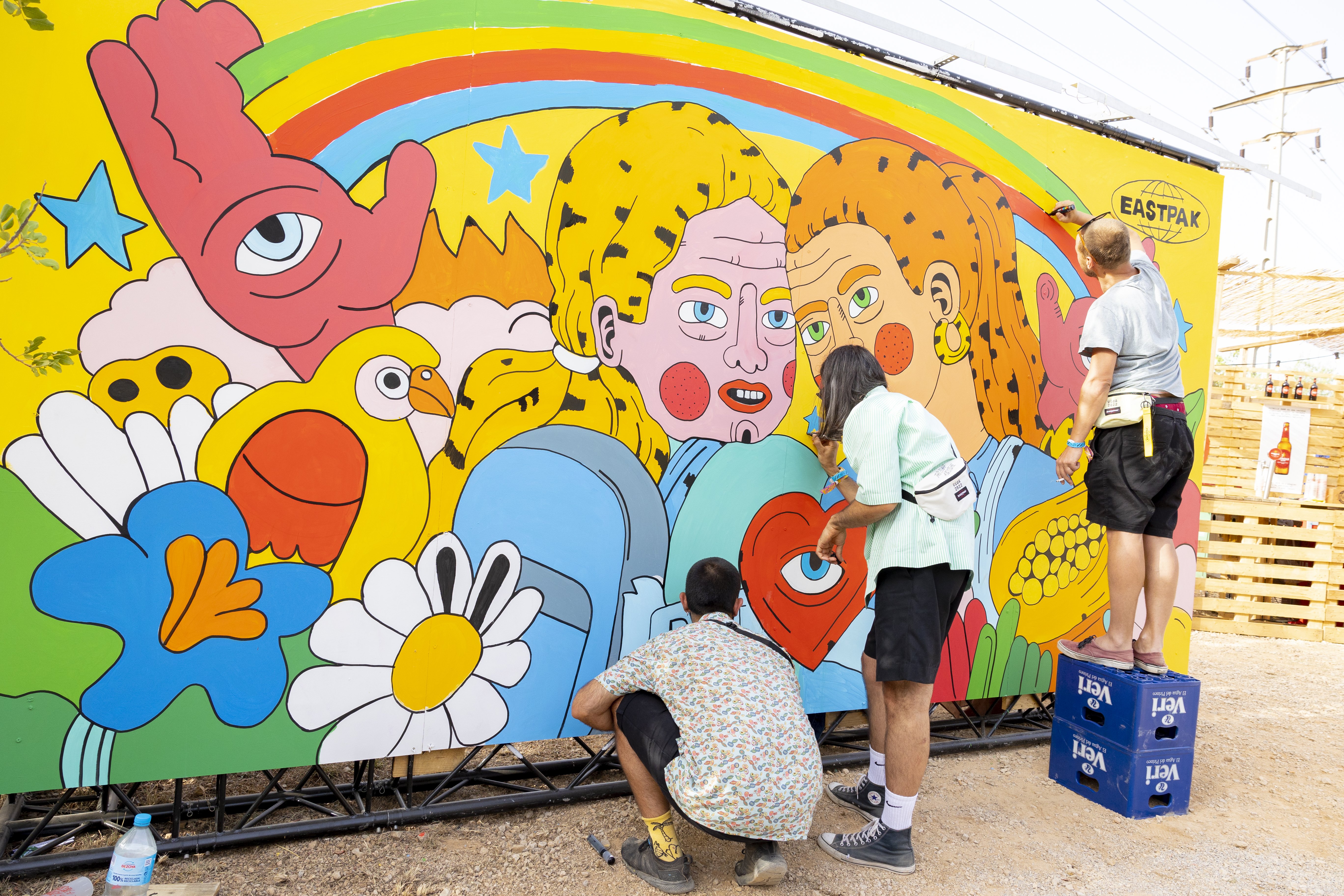 Varios artistas pintan un mural en el festival de música celebrado en Vilanova i La Geltrú. / Foto: Pol Mascaró.