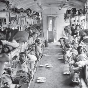 Fotografia de portada: Prop del front de l’Ebre, agost de 1938. Tres fileres de pacients omplen l’interior del tren hospital del front de l’Ebre. Alec Wainman.