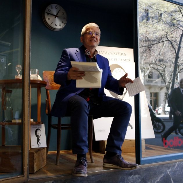És difícil passar una setmana sense coincidir d'una manera o altra amb Màrius Serra: regularment fa mots encreuats i col·laboracions en premsa, participa en tertúlies, apareix a programes televisius... Però a més a més, publica llibres, coordina seminaris, presenta actes d’allò més diversos, fa traduccions... A la seva vida ha publicat 14 llibres de narrativa i 7 de ludolingüística, a més de 9.000 mots encreuats i 4.000 articles. Explica que, sovint, la gent li demanava “D’on treus el temps?”. Ara ho ha decidit explicar en el seu llibre D’on trec el temps. I per explicar-ho ha fet un exercici inaudit de transparència: ha decidit passar tot el dilluns 20 en un aparador, a la Metal·listeria Bolívar, a la Rambla Catalunya cantonada Consell de Cent.