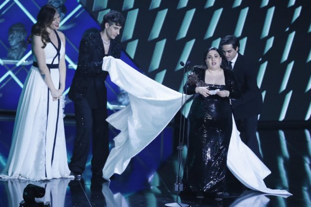 L'actriu rep el premi i fa una crida a totes les persones que pateixen bullying dient 'vosaltres no en teniu la culpa', un dels missatges més emotius de la Gala dels Premis Goya 2023.