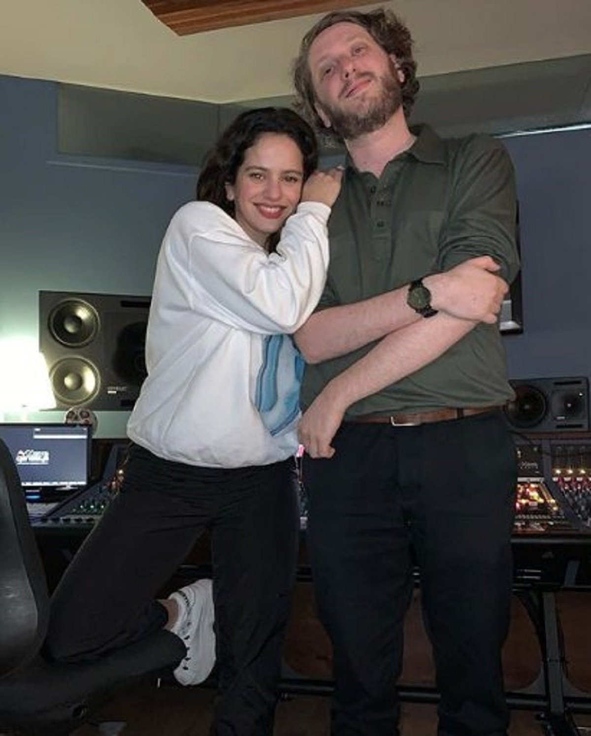 Imatge principal, Rosalía i Daniel Loaptin (Oneohtrix Point Never) a l'estudi el 2018 / Twitter