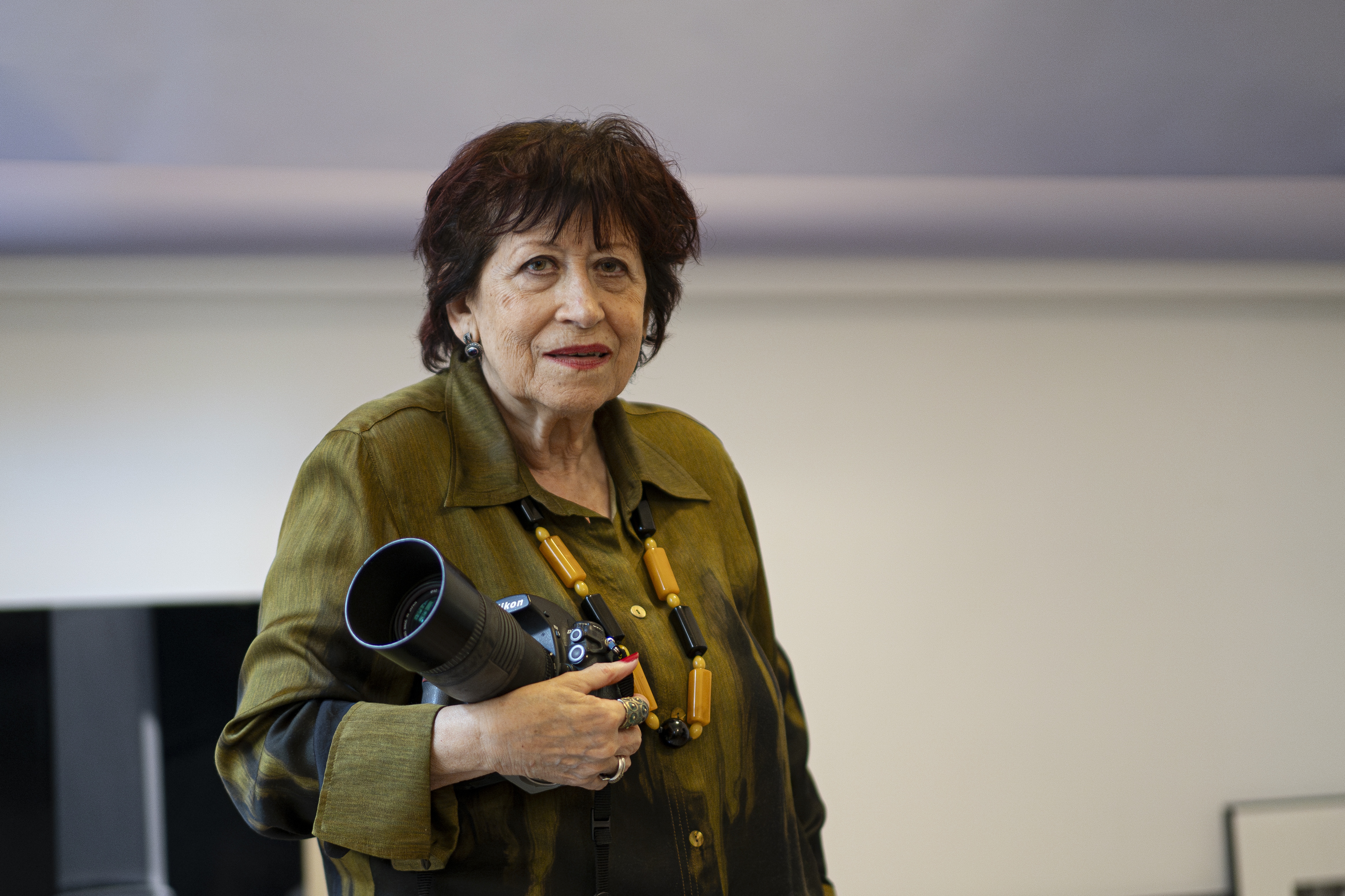 Mentre obre l'enorme porta de casa seva, amb una camisa verd oliva i els llavis color carmí a conjunt amb les ungles, Pilar Aymerich contesta una trucada telefònica i ens convida a passar amb un breu moviment de cap. És la segona o tercera entrevista del dia, diu, i després en té alguna més per promocionar La Barcelona de Pilar Aymerich (Comanegra), un llibre de gran format que combina la seva memòria amb 250 de les milers de fotos que ha disparat al llarg de la seva vida. El seu vast estudi té tant d'ella que la seva ombra ja s'ha mimetitzat amb les parets, estampada entre la gavardina de pell marró vintage del maniquí i els focus de l'estada. Mentre els companys gràfics munten el set i es preparen per retratar la retratadora, la Pilar ho observa tot amb destresa i calma, sense gastar gaires paraules, però captant-ho tot amb la seva curiosa retina. Pels seus ulls felins han passat tantes coses que la profunditat de la història s'intueix en les parpelles, en la mirada i en la forma d'enfocar. Ella és la fotògrafa de la Transició i de les dones, de la cultura catalana i del teatre compromès, i per tanta rebel·lió se la va premiar amb el Premi Nacional de Fotografia el 2021, perquè les dones ens hem hagut d'aferrar massa al més val tard que mai.