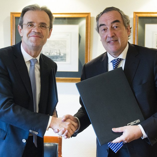 El president de CaixaBank, Jordi Gual, i el president de la Confederació Espanyola d'Organitzacions Empresarials (CEOE), Joan Rosell, han signat un acord de col·laboració per posar a disposició de les empreses afiliades a la CEOE i de les seves organitzacions empresarials una línia de finançament de 20.000 milions d'euros. L'objectiu de l'acord és proporcionar una resposta eficaç a les necessitats de les empreses que les ajudi en la seva internacionalització, en els seus projectes d'innovació i que fomenti l'emprenedoria.