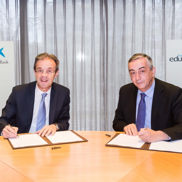 El director general de la Fundació de les Caixes d'Estalvi (Funcas), Carlos Ocaña, i el president de CaixaBank, Jordi Gual, han signat un conveni per impulsar activitats i projectes d'educació financera. L'acord s'emmarca en el Programa Funcas d'Estímul de l'Educació Financera de 2018 dotat en 3 milions d'euros.